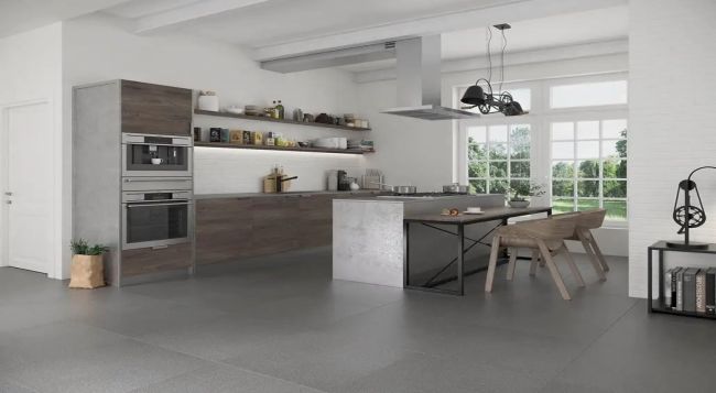 Ha lakásunkban csak egy nagy összefüggő tér van zónákra osztva, akár parkettára rá lehet csempézni: olyan kiterjedésben, amilyenben a tényleges konyhatér tart. Vagy ugyanezt akár eltérő csempékkel tovább is szabdalhatjuk egy reggeliző pult és egy szokványosabb konyhaterület alzónáira. Az ilyen tendencia jelzi: